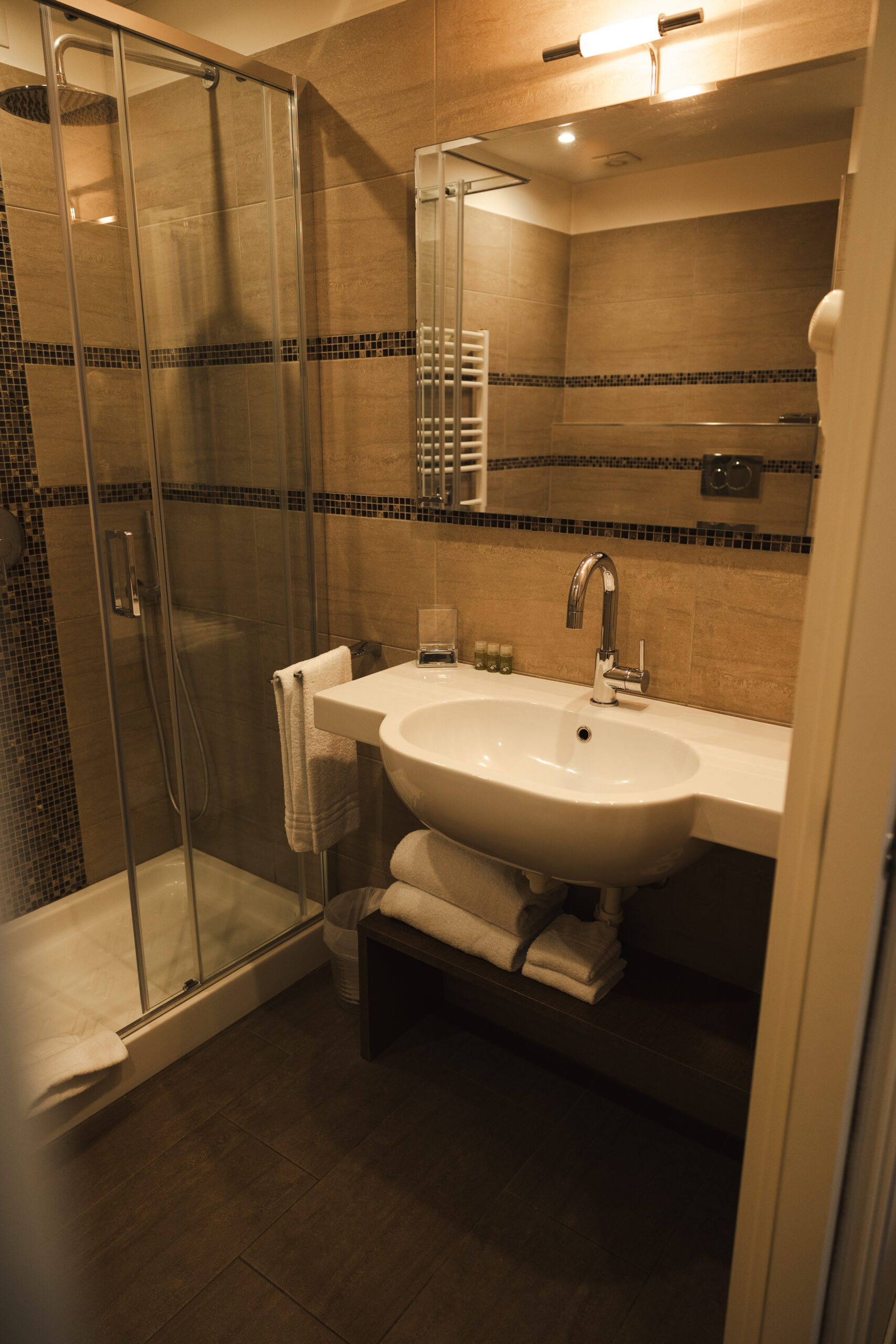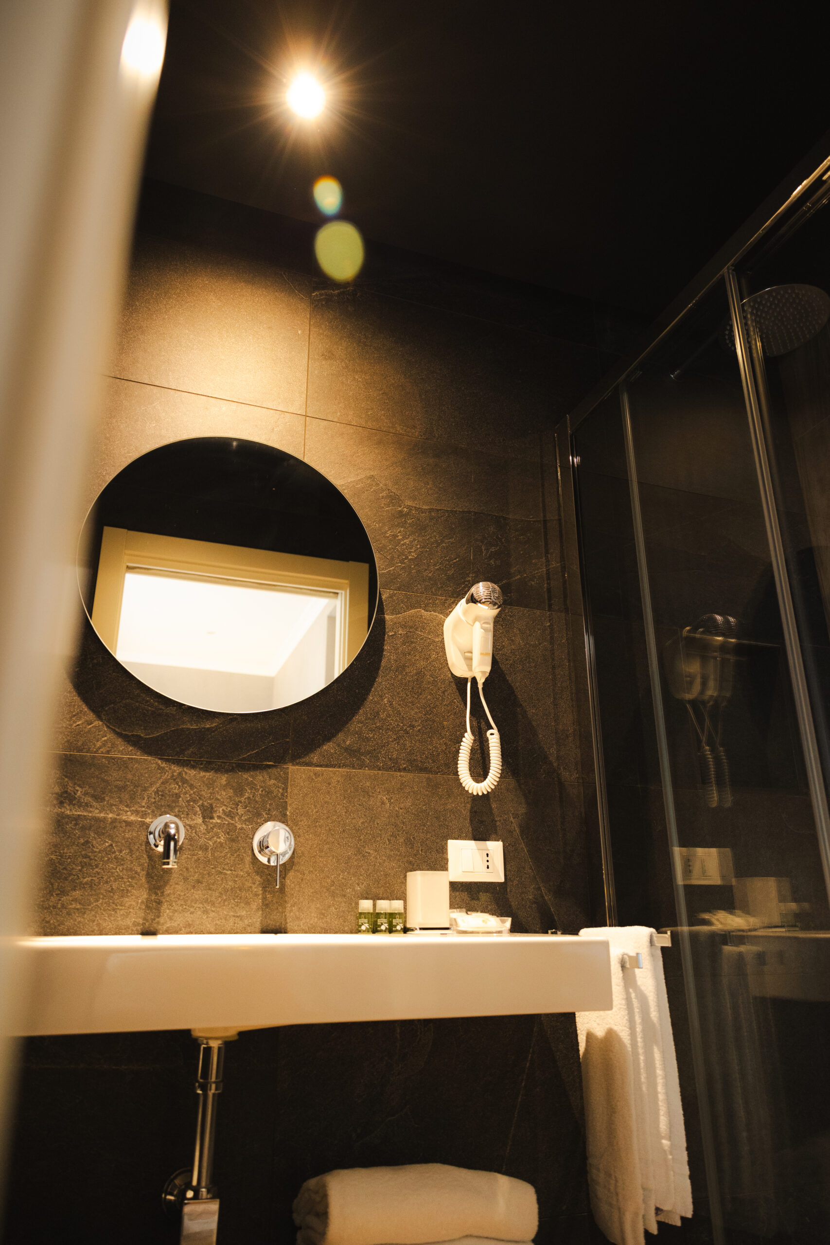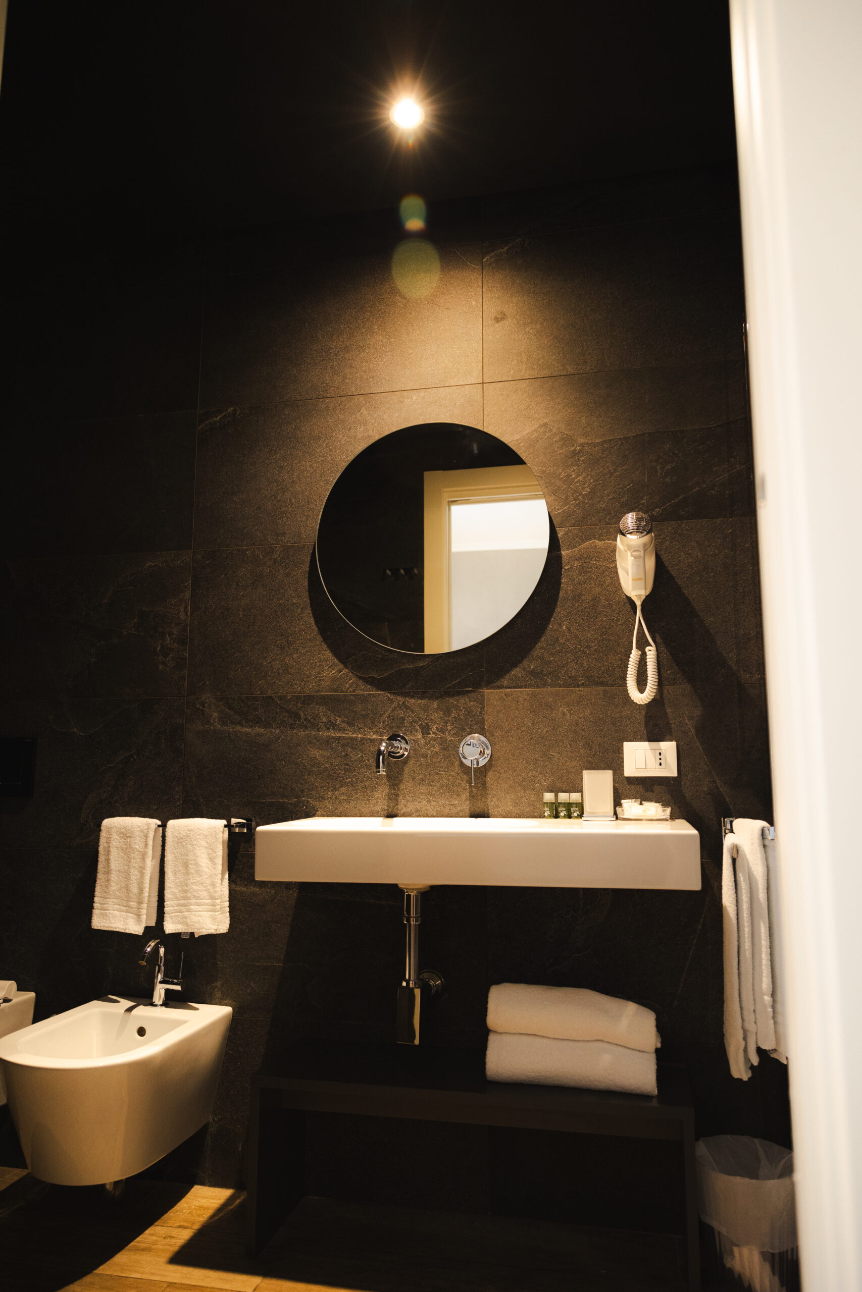 Camere con arredi moderni e colori rilassanti che dispongono di ogni comfort: bagno con Doccia Extra Large, Set di Cortesia, Aria Condizionata, servizio Biancheria e Asciugamani, Smart Tv, Asciugacapelli, Wi-Fi e kit gratuito per la Colazione (macchina del caffè Nespresso, bollitore per tè caldo, acqua, succo di frutta e biscotti).